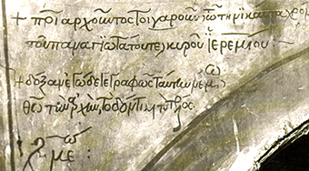 «...Πρωθιεραρχούντος τοιγαρούν τω τηνικαύτα χρόνω/ του Παναγιωτάτου τε κυρού Ιερεμίου/ δόξαν εγώ δε γεγραφώς ταύτην εν θεώ την αρχήν τω δόντι και το τέλος ζμε, ινδ.ι΄ (7045 = 1536/7)».